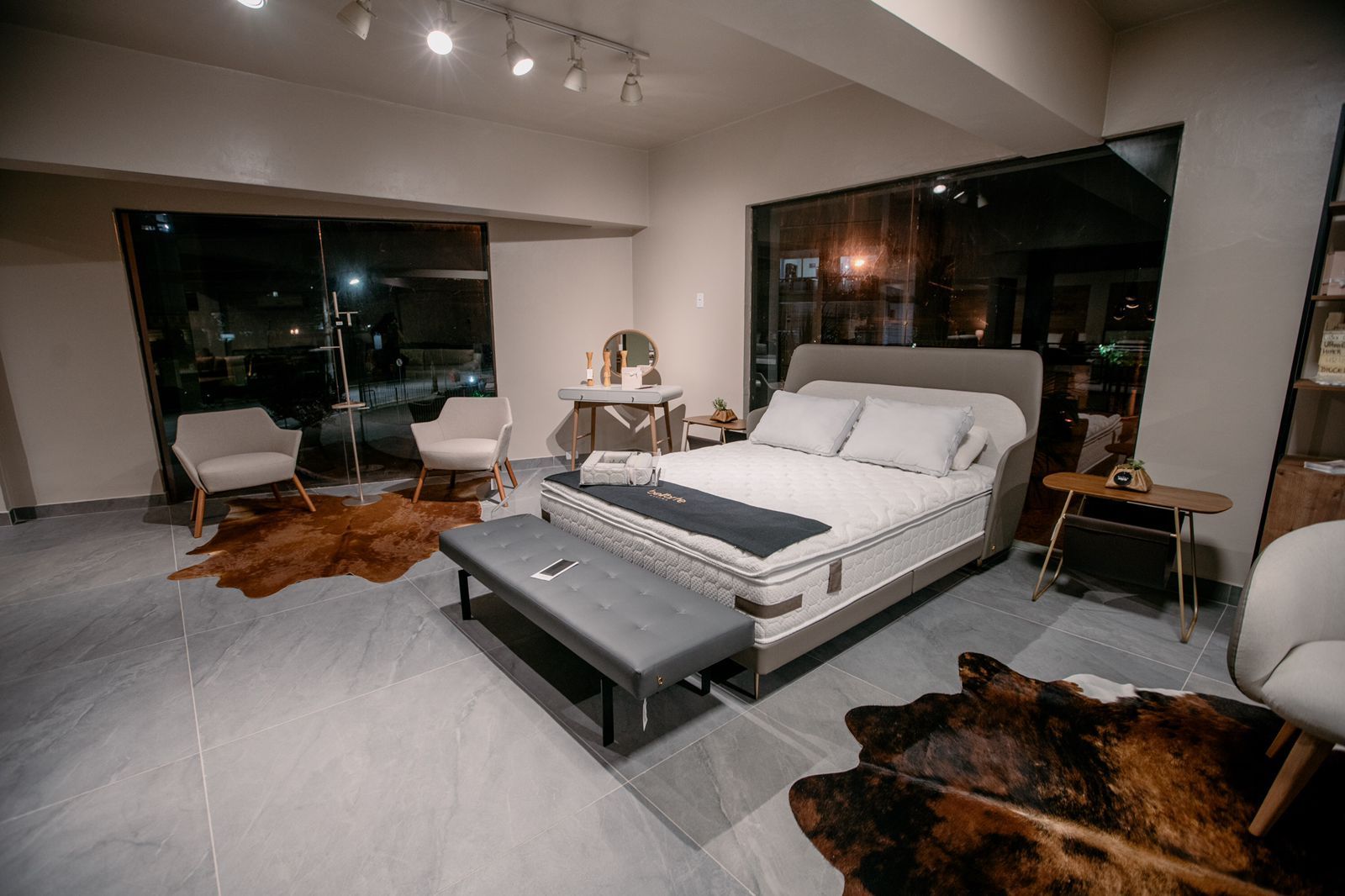 Através de uma atmosfera acolhedora, a galeria apresenta a linha de camas, bases, cabeceiras, colchões, mobiliário para o quarto e também roupas de cama da marca, expondo em cada detalhe a nossa preocupação com o uso de materiais nobres e com um acabamento perfeito.
