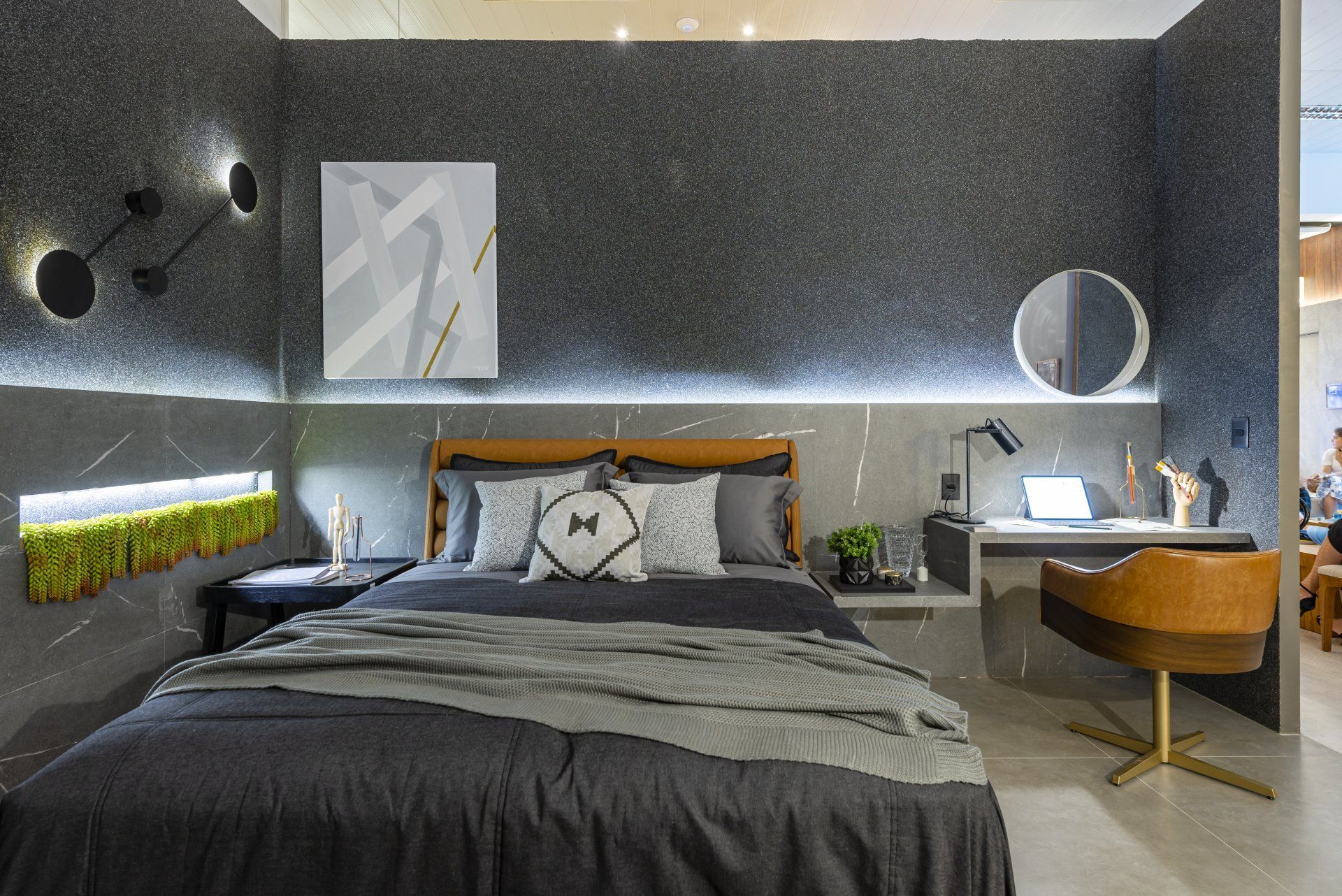 A cama Átria possui um design moderno, assinado pelo designer Ricardo Barddal.