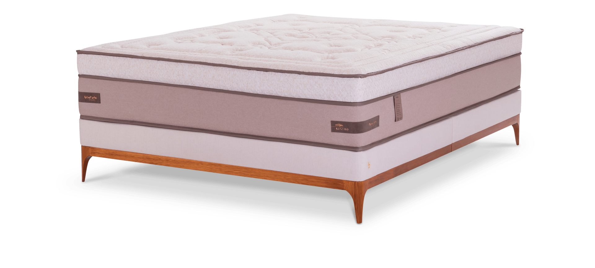 O colchão Austro combina detalhes sofisticados com excelente suporte e conforto. O modelo é composto por um sistema de molas ensacadas individualmente, que impede a interferência dos movimentos de uma pessoa no sono da outra, e por espumas de densidade média que garantem a melhor distribuição do peso do corpo por todo o colchão. O tampo leva malha turca com bordado exclusivo, com toque plush e termossensível, naturalmente refrescante. Nas laterais, o acabamento em linho sintético, um tecido de alta decoração, traz elegância para o ambiente. Vai ser difícil sair da cama ao despertar!