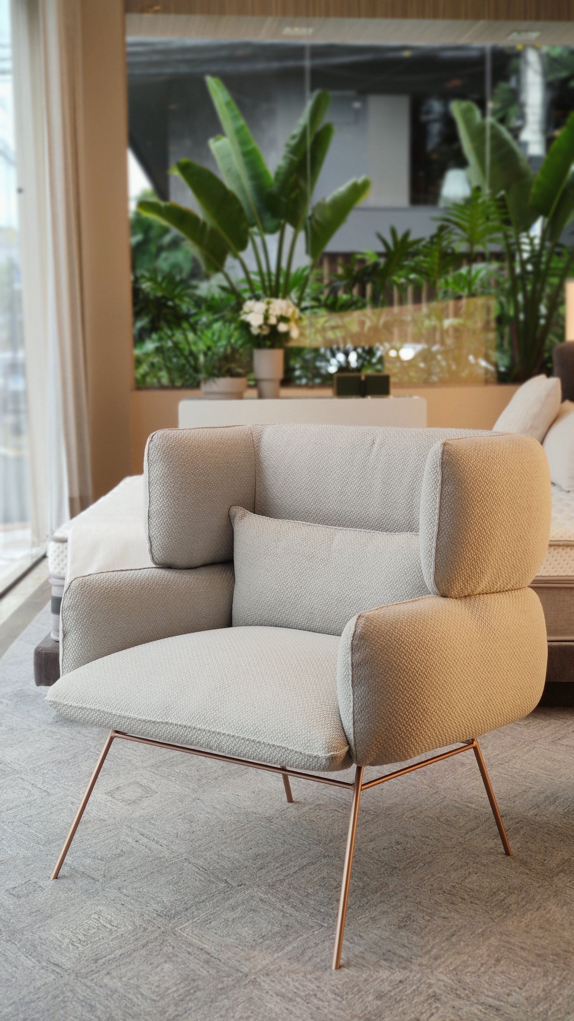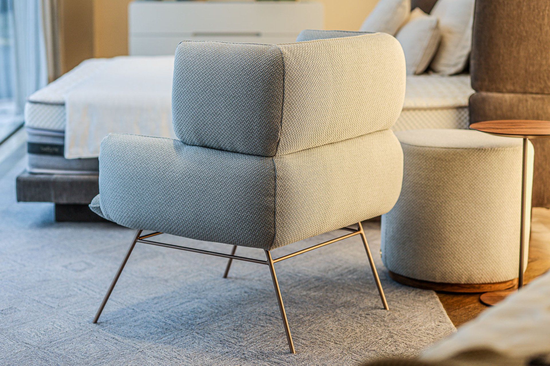 Ambas as peças contam com almofadas sutilmente posicionadas, que dão a sensação de abraçar e acolher sem abrir mão de uma elegância ímpar.