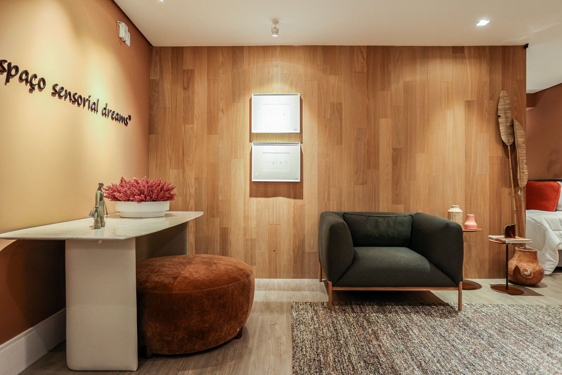 Espaço Sensorial Dreams na Loja de Balneário Camboriú, assinado por Ana Luísa e Artur do escritório Arqtetos Arquitetura.