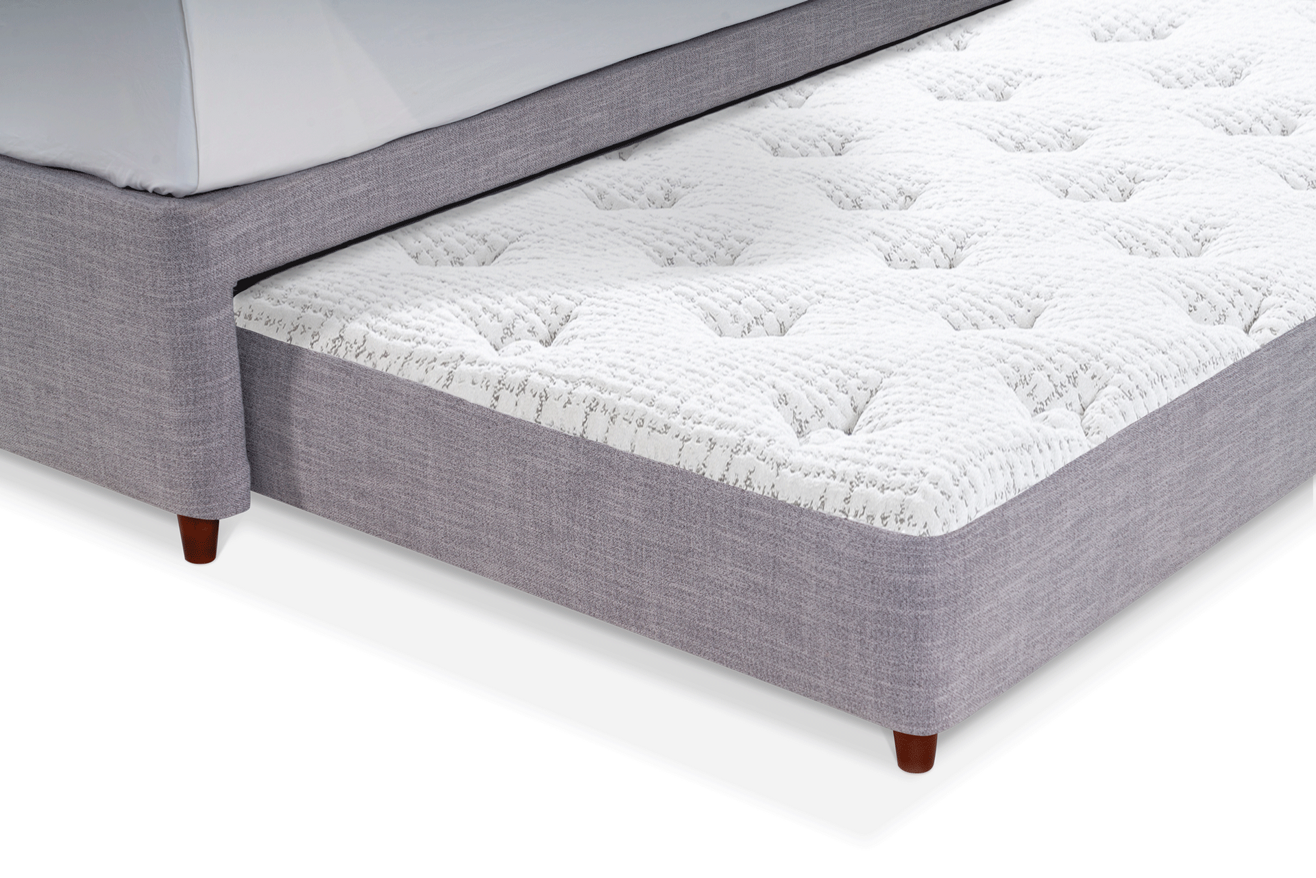 Estável, a cama auxiliar é equipada com um sistema de molas ensacadas individualmente, que promovem o encaixe perfeito dos contornos do corpo e o alinhamento da coluna durante todo o descanso. O modelo é revestido com tecidos de alta decoração, perfeitos para ambientes com estilo.