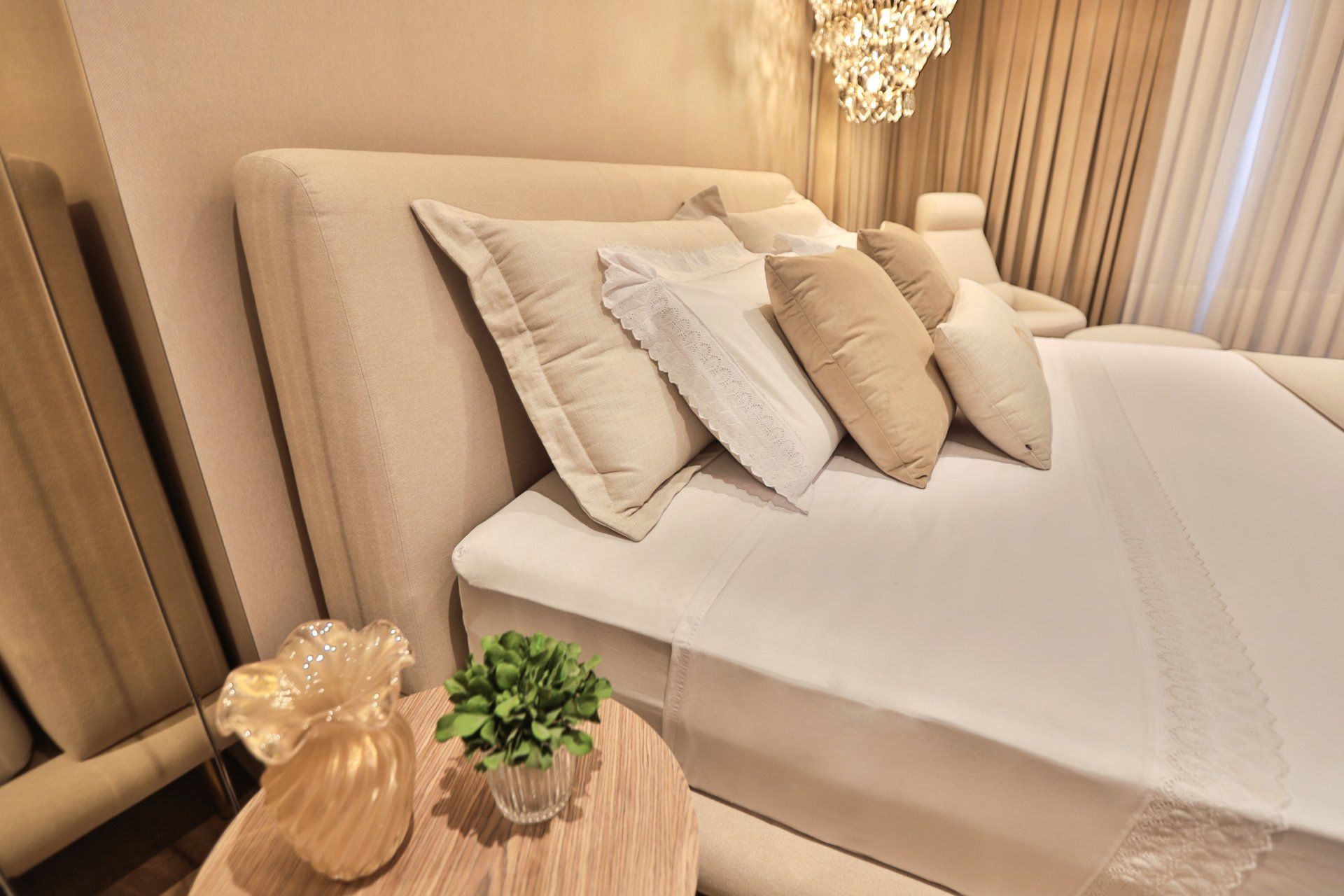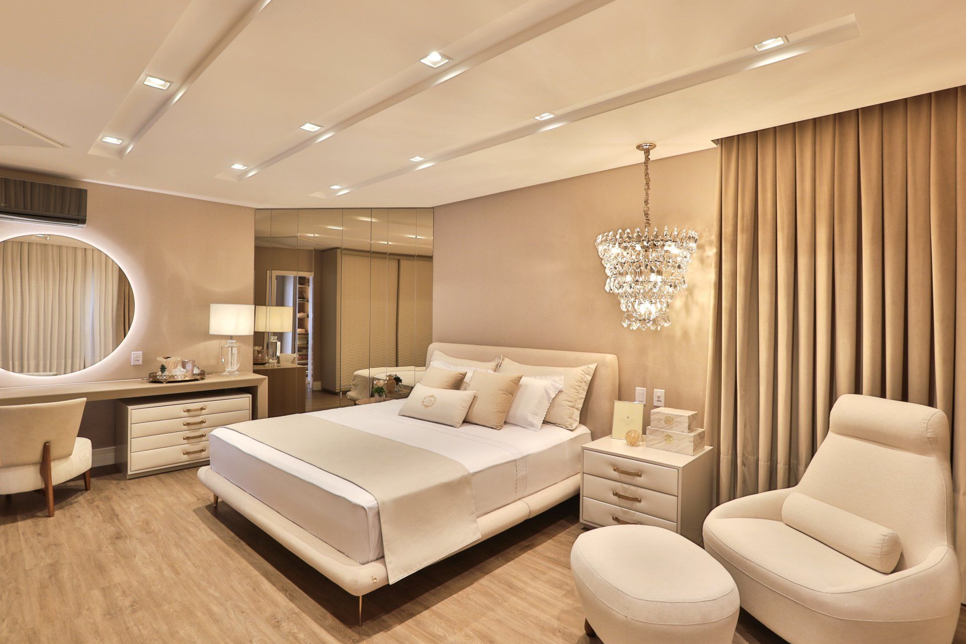 Sua versatilidade a torna indicada para quartos com decoração contemporânea, mas a peça também é bem-vinda em espaços mais clássicos.