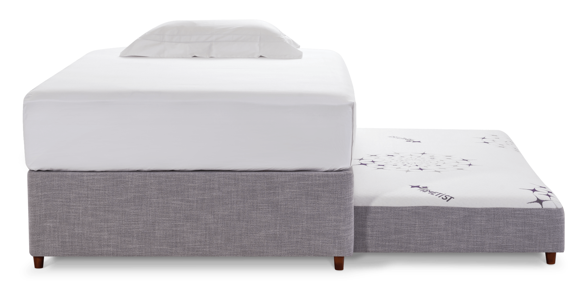 Estable, la cama auxiliar está equipada con un sistema de resortes embolsados individualmente, que proporcionan un ajuste perfecto de los contornos del cuerpo y el alineamiento de la columna durante todo el descanso. El modelo está revestido con telas de alta decoración, perfectas para ambientes con estilo.