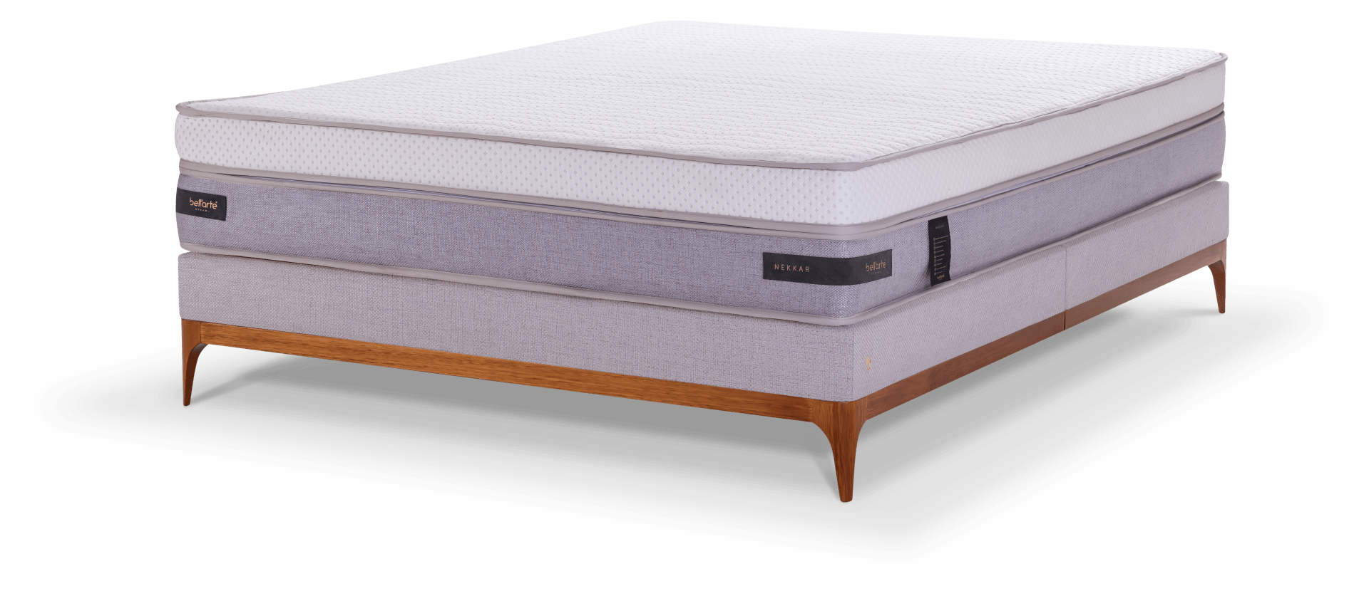 El modelo Nekkar lleva el momento de descanso a un nuevo nivel. Compuesto íntegramente por una placa de látex natural importada con tres zonas diferenciadas de confort, ofrece una sensación perfecta de adaptación a cada parte del cuerpo, desde los pies hasta la cabeza. Está revestido con un tejido 3D altamente ventilado y una funda removible y lavable, fabricada con malla turca Triple Fresh, que envuelve la piel con suavidad y ha sido premiada internacionalmente por su tecnología: elimina olores indeseados y gases perjudiciales para la salud, contribuyendo a un entorno de descanso más agradable.