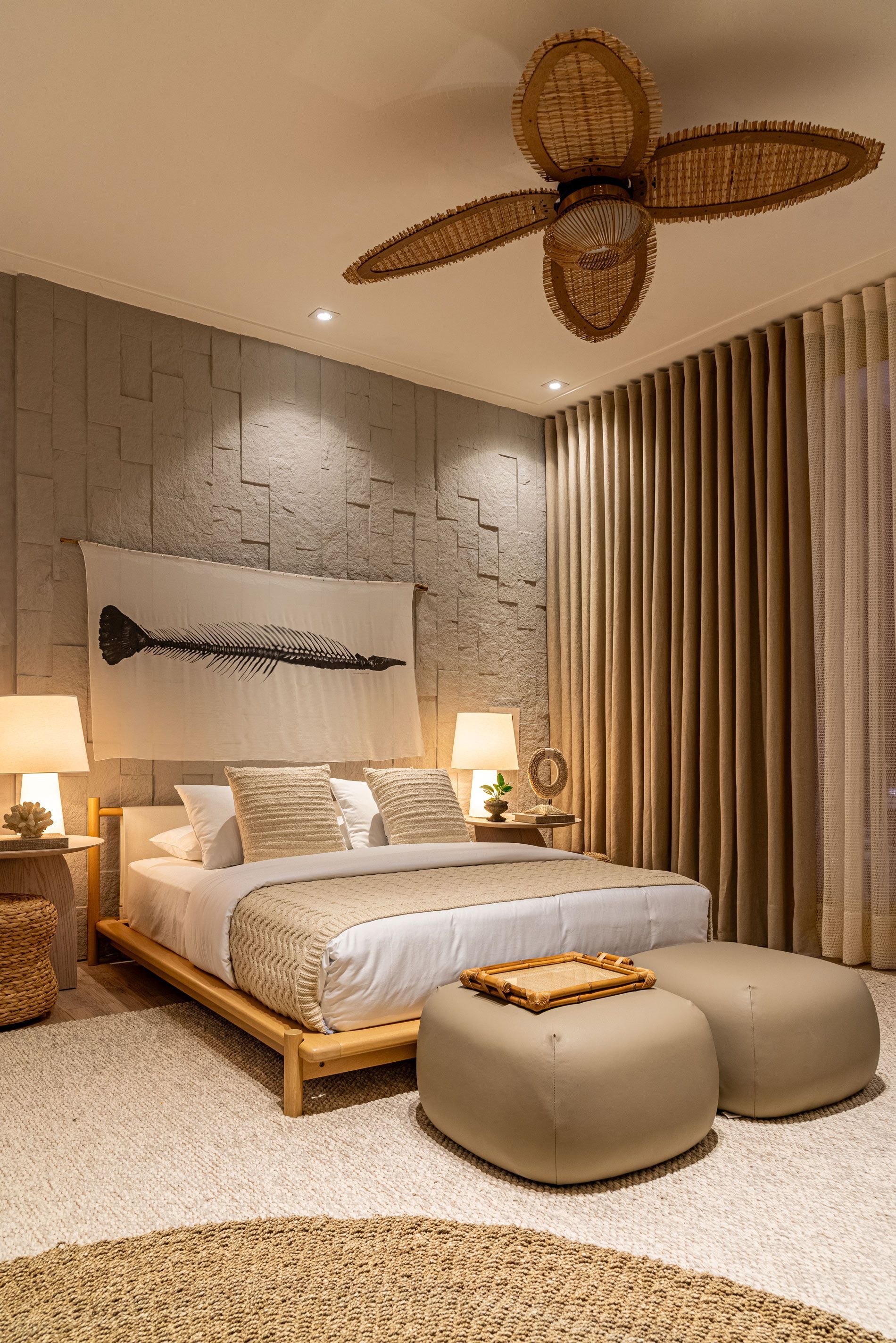 Benedito Neto foi responsável pela Suite da Casa de Praia, com a cama Veleiro como peça central o ambiente trouxe o ar litoranêo e uma brasilidade que dança entre as linhas do projeto.