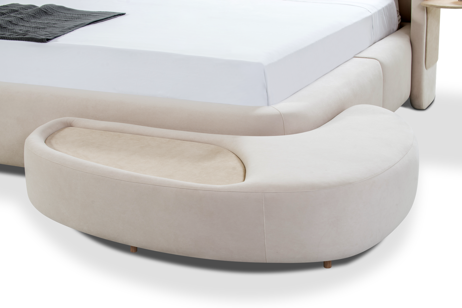 A cama Lua, concebida pela arquiteta Sabrina Barros, é uma obra-prima do design orgânico que harmoniza robustez e feminilidade em uma simbiose impecável. Sua forma flui com naturalidade, como se moldada pelas mãos do tempo e esculpida pela brisa, servindo como um convite visual ao relaxamento profundo. A leveza intrínseca ao seu design transcende a mera estética, tornando-se uma autêntica promessa de serenidade.