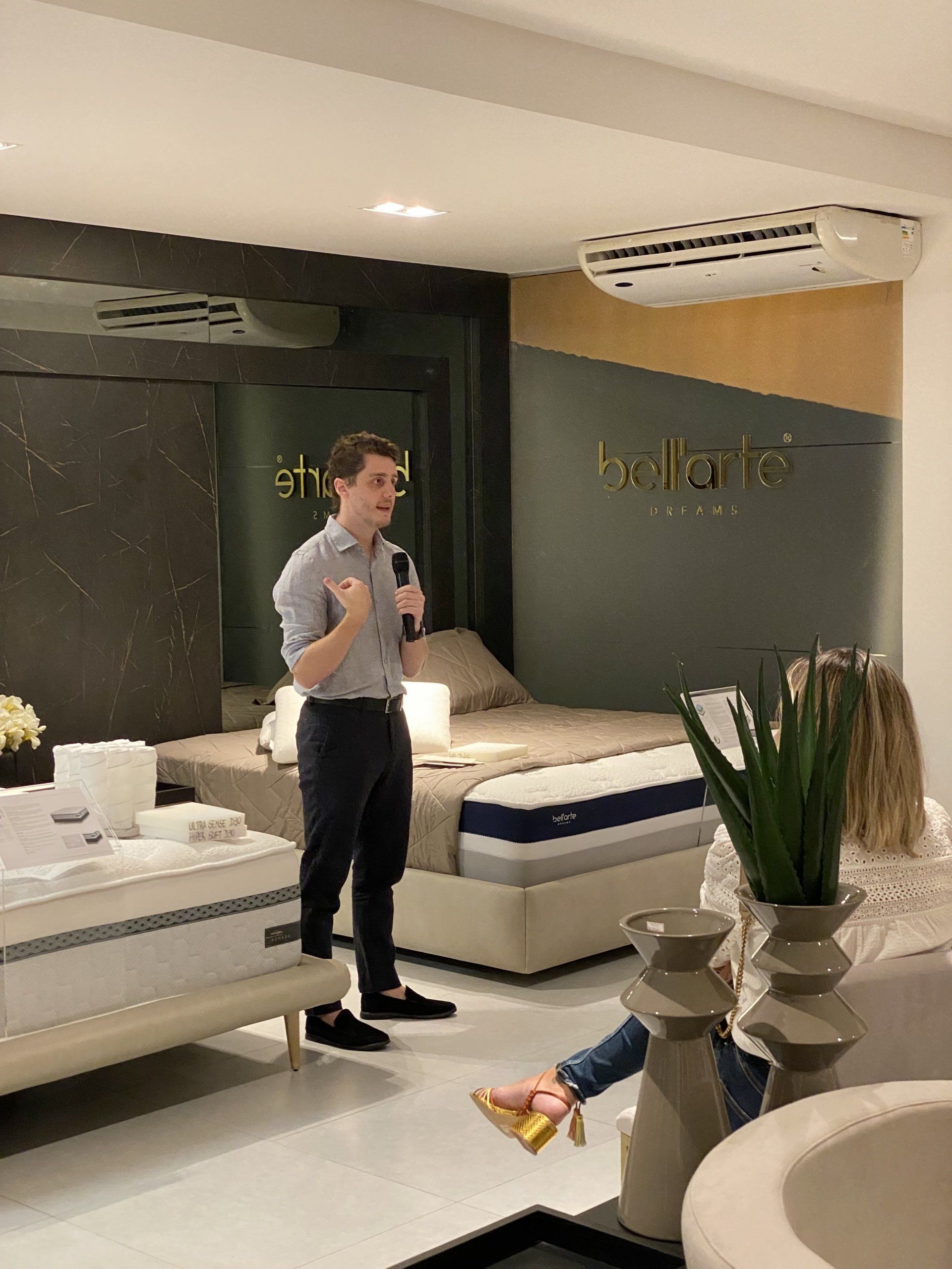 A inauguração contou com a participação de Crystian Freiberger, um dos diretores do Grupo Bell’Arte. Crystian aproveitou a ocasião para falar aos convidados sobre a marca e apresentar os detalhes dos produtos, considerados o que de há mais nobre para dormir bem em todo o país.