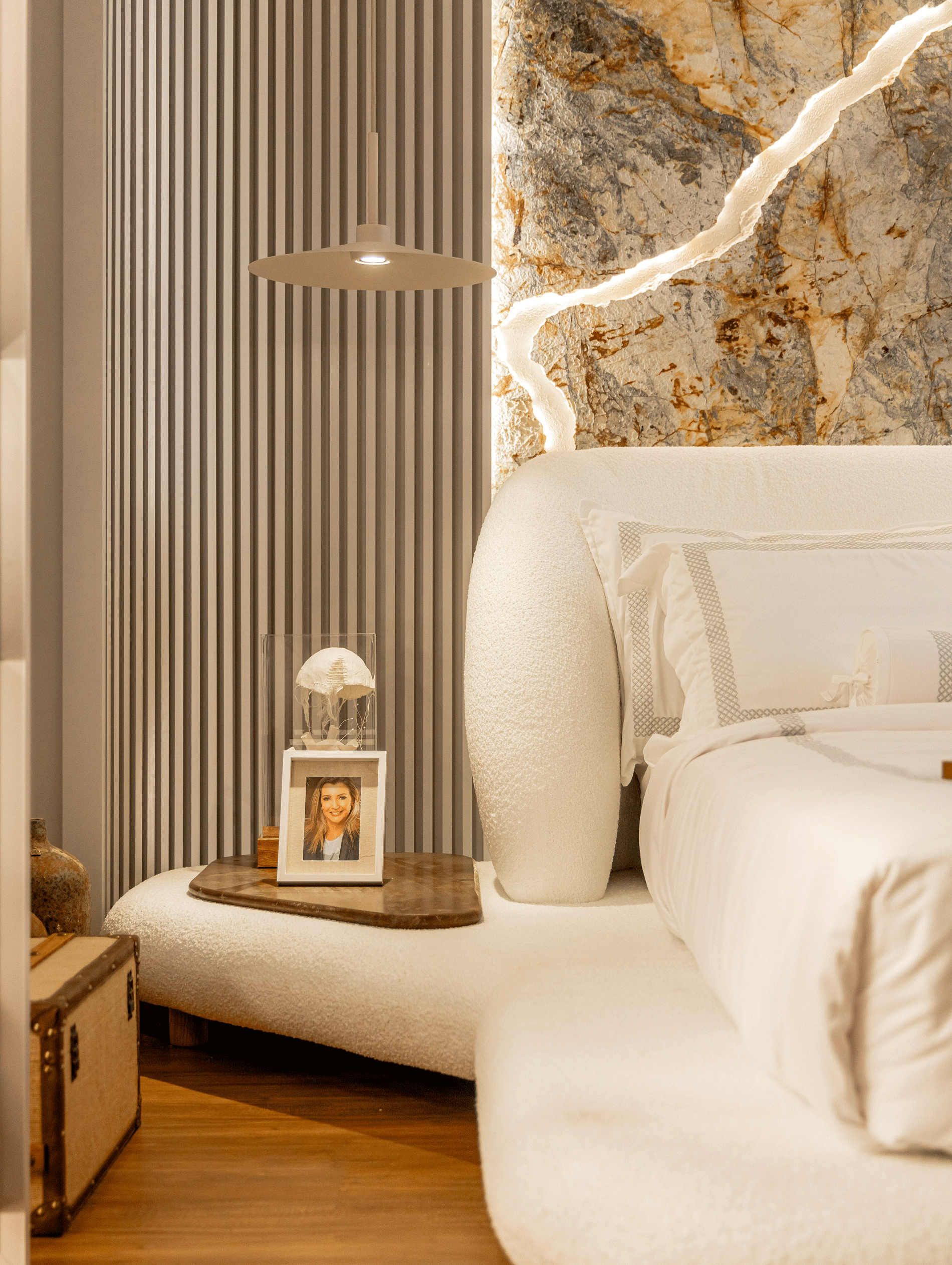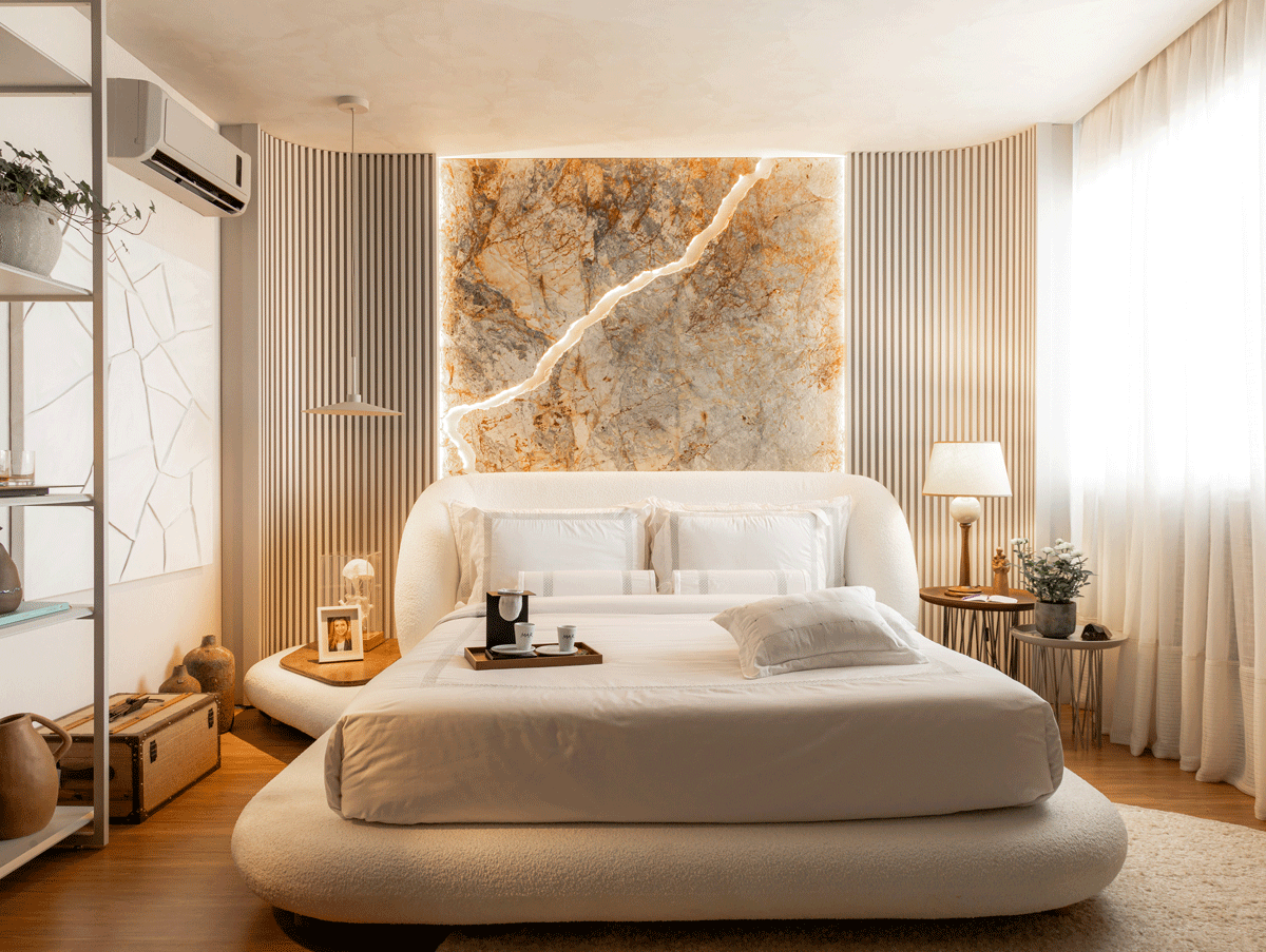 A cama Oslo, uma criação da Designer Larissa Diegoli, tem como principal característica promover o maior conforto possível, em um espaço generoso. Ela nos convida a deixar para trás o stress do dia e a nos entregarmos ao relaxamento completo, sendo nosso refúgio de descompressão, criando também memórias afetivas como nas manhãs preguiçosas de domingo, transcendendo sua funcionalidade.